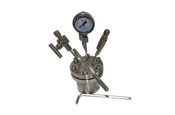 釜選用材質(zhì)304不銹鋼、316L材質(zhì)、哈氏合金材質(zhì)等 ;全配高壓不銹鋼進出氣閥門、全不銹鋼壓力表、壓力防爆裝置、全不銹鋼取樣閥門、全不銹鋼溫度探頭,可方便的實現(xiàn)微量反應(yīng)實驗;